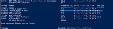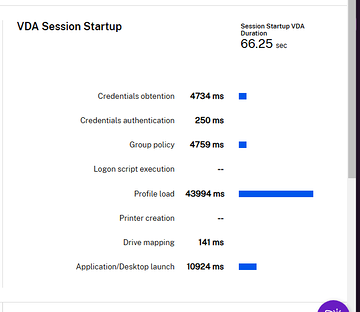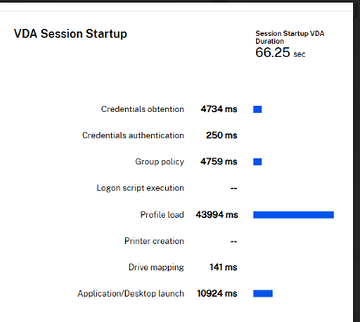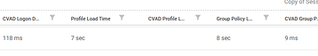 Anyone see data discrepency between controlup LOGON DURATION in the report "Session activity" and what is shown in citrix monitor? For example, this user shows LOGON DURATION OTHER = 298 and PROFILE LOAD TIME = 5 seconds. but in monitor, it shows the profile load time was long. Using citrix profile manager container if that matters
