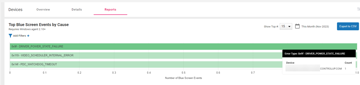 Did you know that there is a report called "Top Blue Screen Events by Cause"? This will show you the exact event error that explains why there was a blue screen.