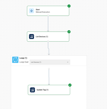 running it in the current state i can see its only tagging one device at every run of the flow, its not looping