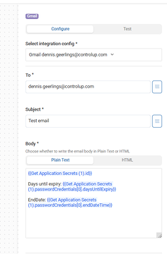 Then the flow needs to send an email about what’s the expiry date, which password credential and so on like: