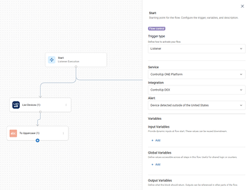 It starts with a listener, some event happens. In my case an alert is triggered.