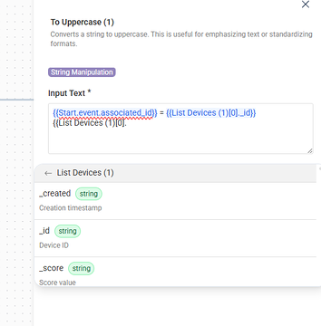 I do use {{Start.event.associated_id}} in the next node. Which is referring to the start node. More specifically the associated ID property of the event property.